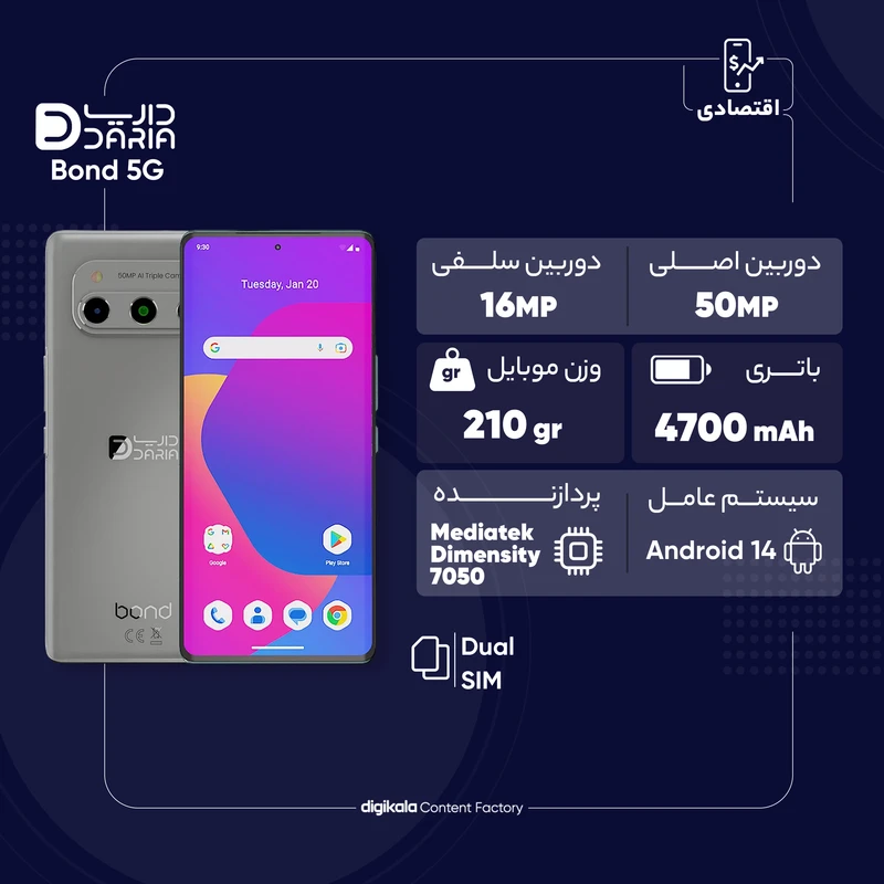 گوشی موبایل داریا 5Gمدل Bond ظرفیت 256 گیگابایت رم 8 گیگابایت