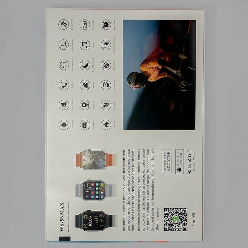 ساعت هوشمند مدل WS-56 MAX یک ساعت هوشمند و مدرن است که به شما امکان میدهد با تمام ویژگیهای جذابش به راحتی در محل کار، ورزش و حتی مواقع رسمی، خوش تیپ و شیک باشید.این ساعت هوشمند دارای قابلیتهای فراوانی است. با قابلیت مکالمه (از طریق اتصال به بلوتوث) و پخش موسیقی، شما میتوانید از تماس با دوستان و موسیقیهای مورد علاقهتان لذت ببرید. اما قابلیت برجستهتر این ساعت هوشمند، سنسورهای سلامتی فراوانی است که دارد. با پایش ضربان قلب، فشار خون، اکسیژن خون و…، این ساعت به شما کمک میکند تا سلامتی خود را بررسی کرده اما لطفاً توجه داشته باشید که این ساعت به هیچوجه، یک وسیله پزشکی نیست و تمامی دادههای مربوط به پایش سلامت، صرفاً به منظور اطلاع کلی شماست ساعت هوشمند WS-56 MAX دارای ده عدد بند سلیکونی قابل تعویض داخل جعبه میباشد. شارژر داخل جعبۀ ساعت از نوع وایرلس و مگنتی است.