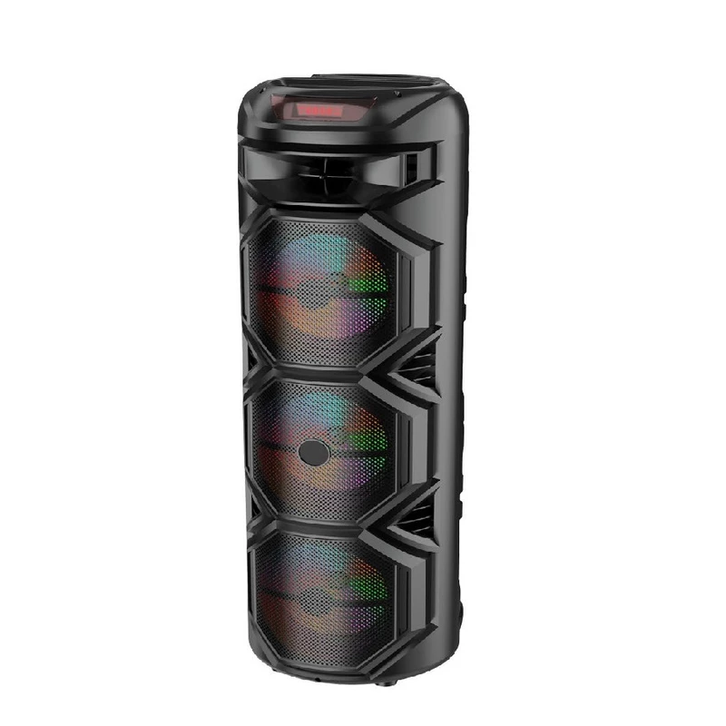 اسپیکر جدید سه ساب(سه باند) ZQS 8301 محصول جدید از شرکت ZQS که در ایران علاقمندان زیادی دارد این اسپیکر زیبا و باکیفیت دارای سه باند 8 اینچ است که همین امر باعث شده پرتاب صدای خوبی نسبت به اسپیکرهای 2 باند داشته باشد. طراحی شیک و زیبا با چرخهای روان باعث شده که شما بتوانید به راحتی آن را حمل کنید. یکی از مهمترین ویژگیهای این محصول جدید که داری میکروفون وایرلس(بیسیم) قابل شارژ با پورت TPC است که جدیدا اسپیکرهای شرکت zqs این قابلیت را اضافه کرده است. ریموت کنترل، کابل شارژ TPC, باطری 4500 میلیآمپر ساعت، توان خروجی 60 وات، اتصال کارت حافظه، USB.AUX و بلوتوث. این ویژگیها باعث شده که این محصول صدای باکیفیت،قیمت مناسب،جمع و جور،بیس نرم، برای شرکت در مجالس شادی و دورهمی خانوادگی شما عزیزان باشد.اسپیکر بلوتوثی قابل حمل مدل ZQS-8301، منبع انرژی باتری و برق، نوع باتری لیتیومی، همراه با میکروفون وایرلس، ریموت کنترل و کابل شارژر، درگاه ارتباطی شامل ورودی میکروفون، شیار کارت حافظه، USB و AUX، دارای چرخ