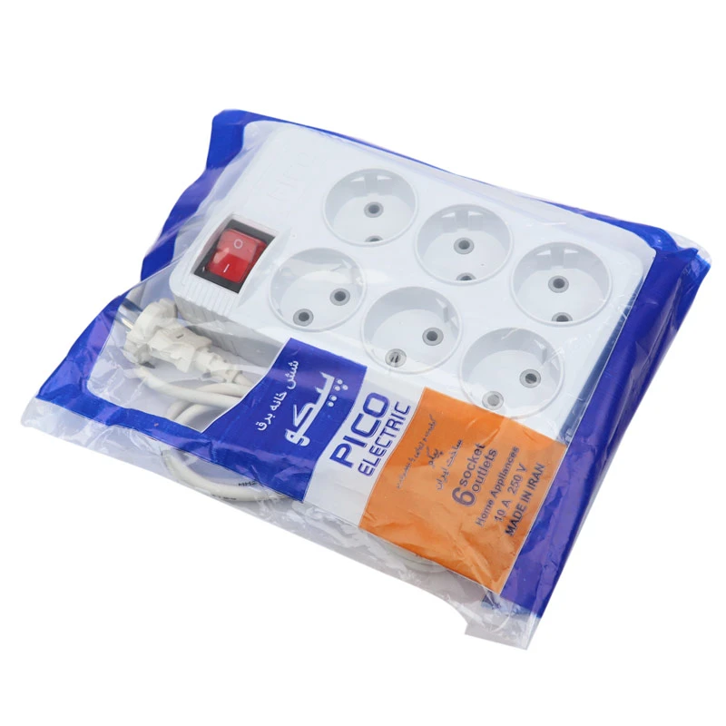6 خانه سیم بلند پیکو یک محصول با کیفیت از برند محبوب پیکو می باشد که داری کابل 3 متری(تلرانس 20 سانتی متر) است . حداکثر جریان انتقالی آن 10 آمپر و برای مصارف کامپیوتر - لپتاپ - صوتی و تصویری و شارژر و لوازم برقی زیر 2000 وات، توصیه می شود.